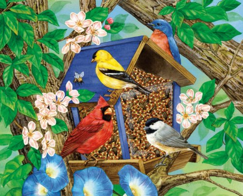 Breakfast Birdhouse Artist: Jane Maday: Item 589: 1000 piece jigsaw puzzle: Finished size 24" x 30"