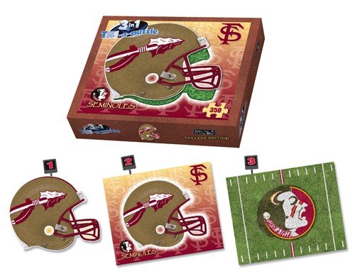 When you're tired of yet another halftime report filled with lackluster commentary, you and your crew can take a break from the talking heads with this 3-in-1 puzzle! This 350-piece puzzle has designs on both sides, so it can be made into three different team-spirited designs: a team helmet, the helmet in a custom team-colored frame or the team logo on a football field. This variety of options guarantees hours of fun, so even during a rain delay, you'll never run out of ways to celebrate your 'Noles!